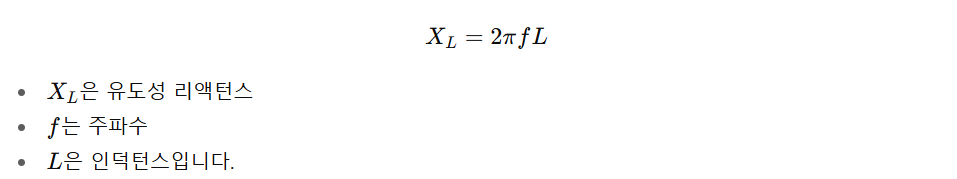 전력 공급의 주파수가 증가하면, 유도성 리액턴스 때문에 임피던스가 증가합니다. 이 관계는 다음과 같습니다: